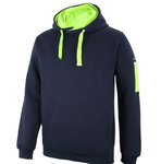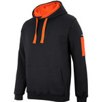 The new JBs 350 Premium Trade Hoodie is a regular fit heavyweight hoodie with pen pocket on left sleeve. Two hi vis colours available, navy/lime and black/orange.