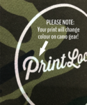WARNING: The camo pattern may be visible through your print. Your print colour may also change. For example,white/light print colours may change to pink/brown in some areas or yellow prints may turn orange. It actually ends up looking pretty cool but may not be the look you're going for so please consider before purchasing. Example images provided.