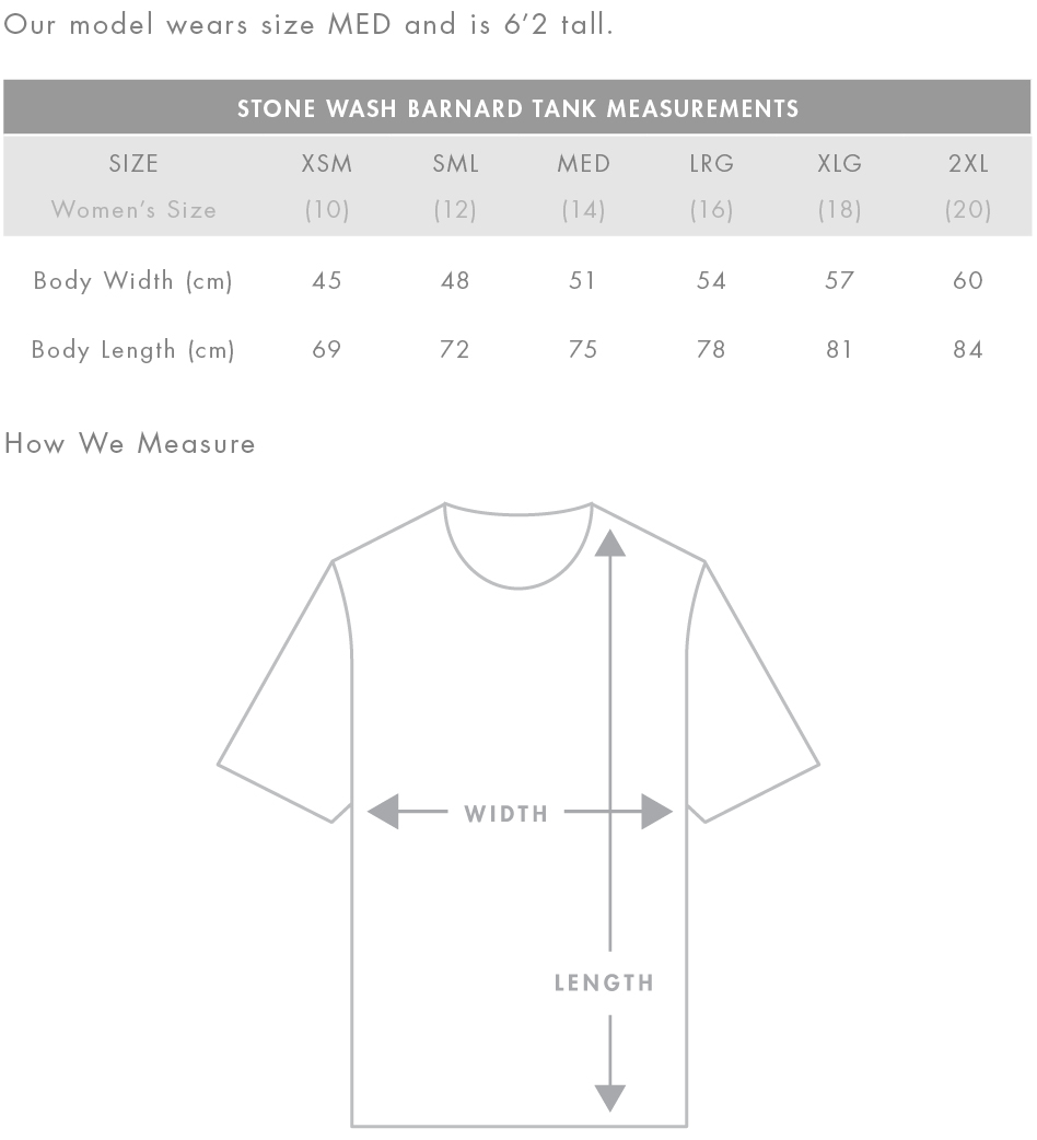 The AS Colour Stone Wash Barnard is a premium quality, mid-weight, regular fit tank with super low, raw (unsewn) arm holes. Please note that due to the manufacturing process, colour variances may occur.